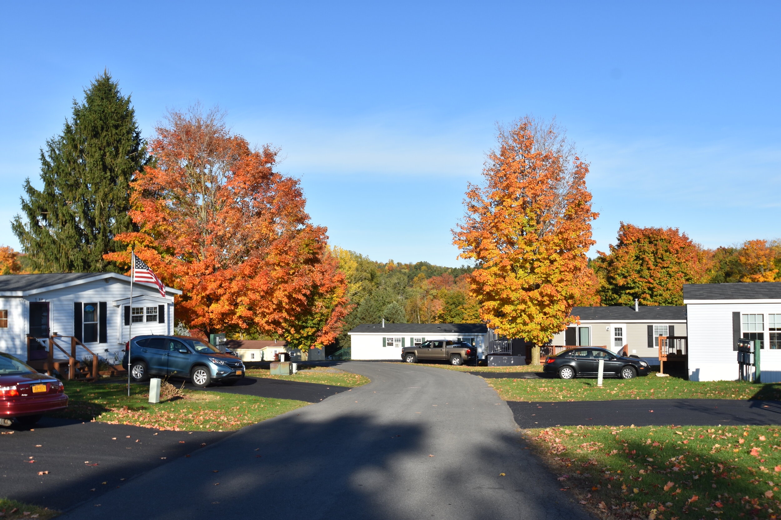 Located on the Shute Family’s former dairy farm in the town of LaFayette, only 12 minutes from downtown Syracuse, Hidden Hills Country Homes is Central New York’s superior manufactured home community, with 85 resident-owned homes and plenty of room for new neighbors (You!). Join our longtime residents in experiencing care-free affordable living in a quiet, picturesque setting surrounded by wooded rolling hills. We also offer a full care-free package which includes landscaping and snow removal. To be clear, some terms people might mistakenly use for Hidden Hills are: a trailer park with trailer homes for sale, a mobile home park with mobile homes for sale, double wide trailers or even modular homes. Remember, trailers haul cattle and beer. People live in manufactured homes. Check out our Frequently Asked Questions to see what sets us apart from these outdated ideas.